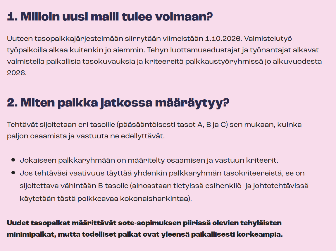 2/2026 paikallisneuvottelut uuden palkkausjärjestelmän käyttöönotosta ovat alkaneet.