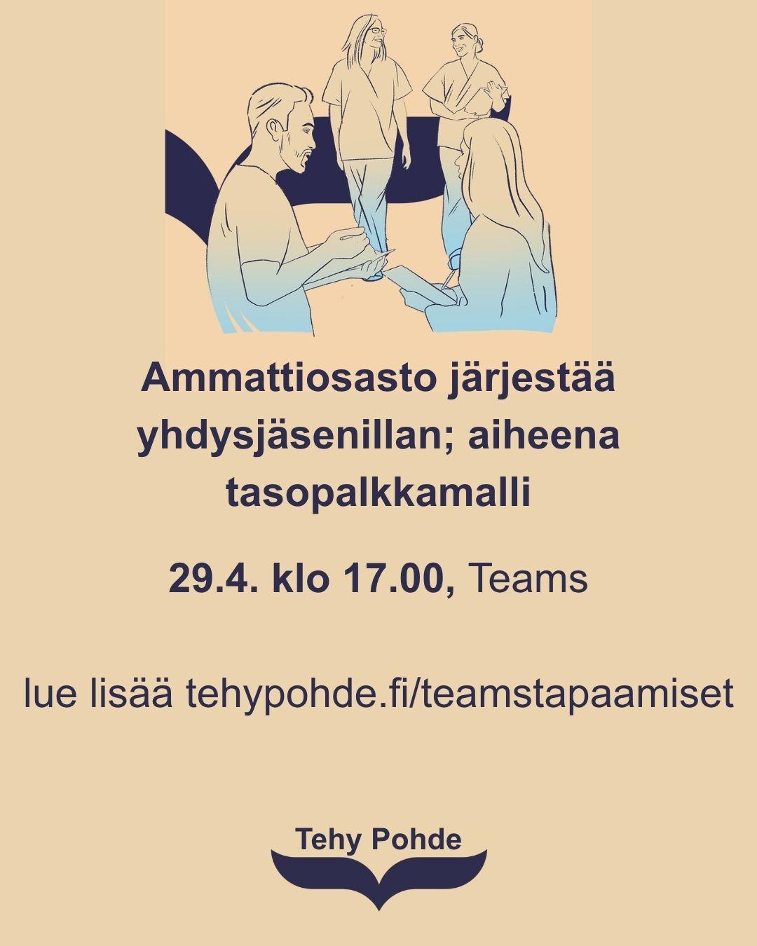 Ammattiosasto järjestää yhdysjäsenille kohdennetun Teams-jäsenillan 29.4.2026 klo 17:00 alkaen. Illan aiheena on tasopalkkamalli.